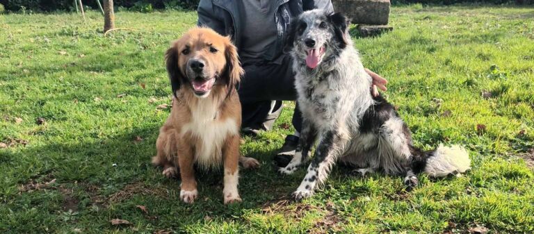 Collie, de couleur noire, est une femelle de 10 ans, et Merlin est un mâle tricolore de 8 ans. Ils sont adorable et très…
