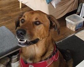 Billou est un croisé Labrador/beauceron de 4 ans. Il a besoin d’un jardin clôturé même s’il répond bien au rappel.